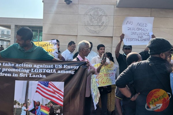 இலங்கையின் இளையோர் மத்தியில் ஓரினச்சேர்க்கையை அமெரிக்கா ஊக்குவிப்பதாகக் குற்றம் சாட்டி, கொழும்பில் உள்ள அமெரிக்க தூதரகத்துக்கு முன்பாக, தேசியவாதக் குழு ஒன்று போராட்டம் நடத்தியது.