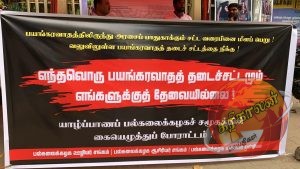பயங்கரவாதத்திலிருந்து அரசைப் பாதுகாக்கும் சட்ட வரைபினை மீளப் பெறு என்றும் வலுவிலுள்ள பயங்கரவாதத் தடைச் சட்டத்தை நீக்கு என்றும் வலியுறுத்தி பல்கலைக்கழக ஊழியர் சங்கம்,