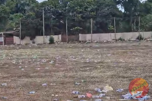 நுாற்றுக்கணக்கான பிளாஸ்ரிக் வெற்று நீர்ப் போத்தல்கள் மற்றும் பொலித்தீன்கள் உட்பட்ட பெருமளவு உக்காத கழிவுகளை குறித்த மைதானத்தில் விதைத்துச் சென்றுள்ளனர் அங்கஜன் குழுவினர்.