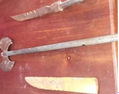 சந்தேக நபர்களிடமிருந்து இரண்டு வாள்கள் மற்றும் கஜேந்திரா வாள் கோடாரி என்பன கைப்பற்றன என்று பொலிஸார் தெரிவித்தனர்.