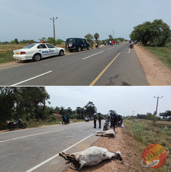 கிளிநொச்சி பொலிஸ் பிரிவுக்குட்பட்ட பரந்தன் முல்லை வீதியின் இரண்டாவது மைல்கல் பகுதியில் கட்டாகலி மாடுகள் திடிரேன்டு வீதியை குறுக்கே சென்ரமையால் வடக்கு மாகாண சிரேஸ்ட பொலிஸ்மா அதிபரின் வாகம் மாட்டுடன் மோதி விபத்து இடம்பெற்றுல்லது.